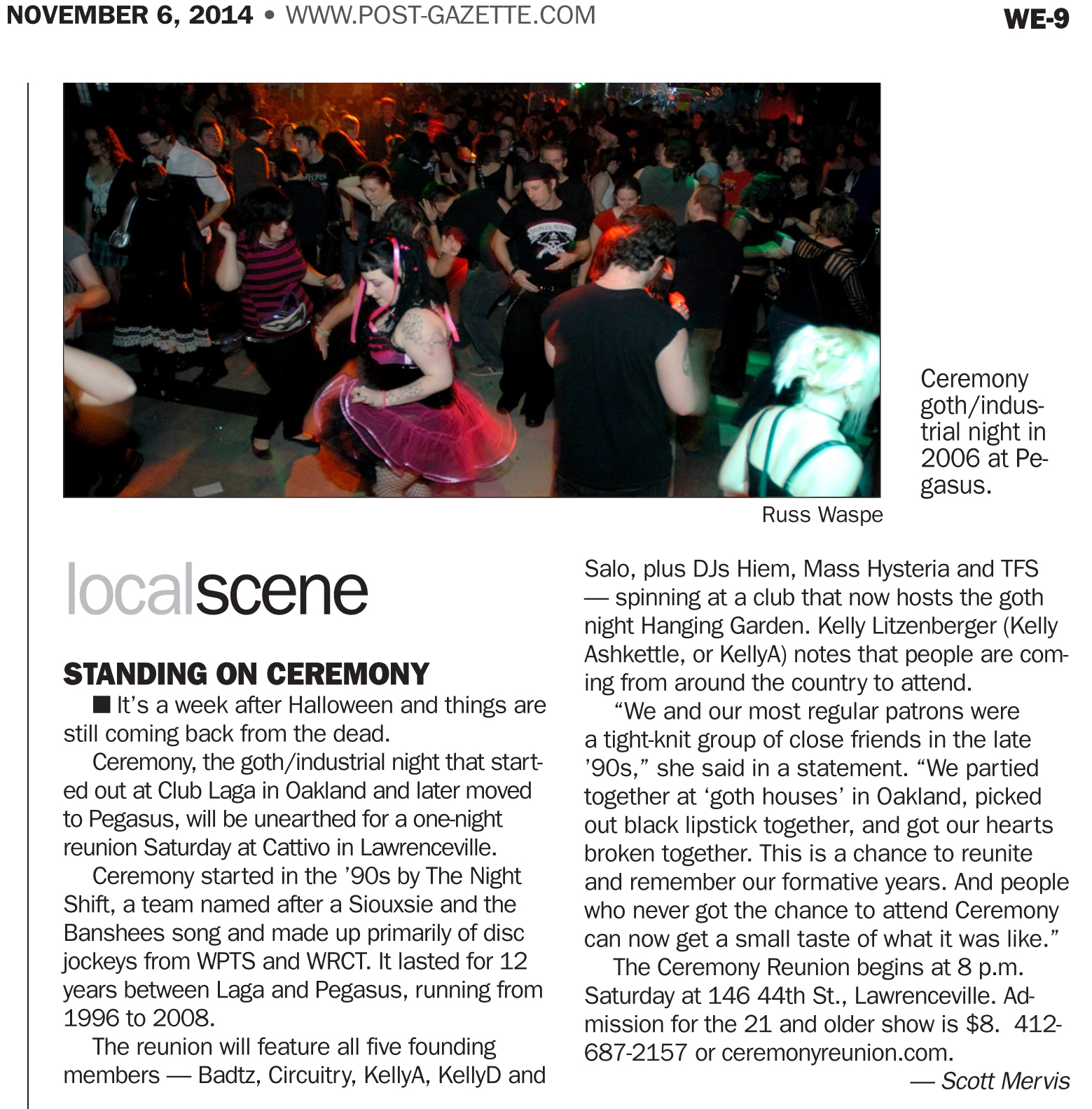 Scott Mervis wrote about the Ceremony Reunion in the Nov. 6, 2014 Weekend Magazine section of the Pittsburgh Post-Gazette.